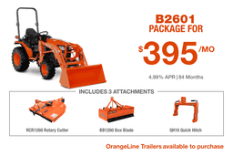 Now’s the time to take home the #1-selling tractor in the Midwest. This Kubota B2601HSD package comes equipped with: